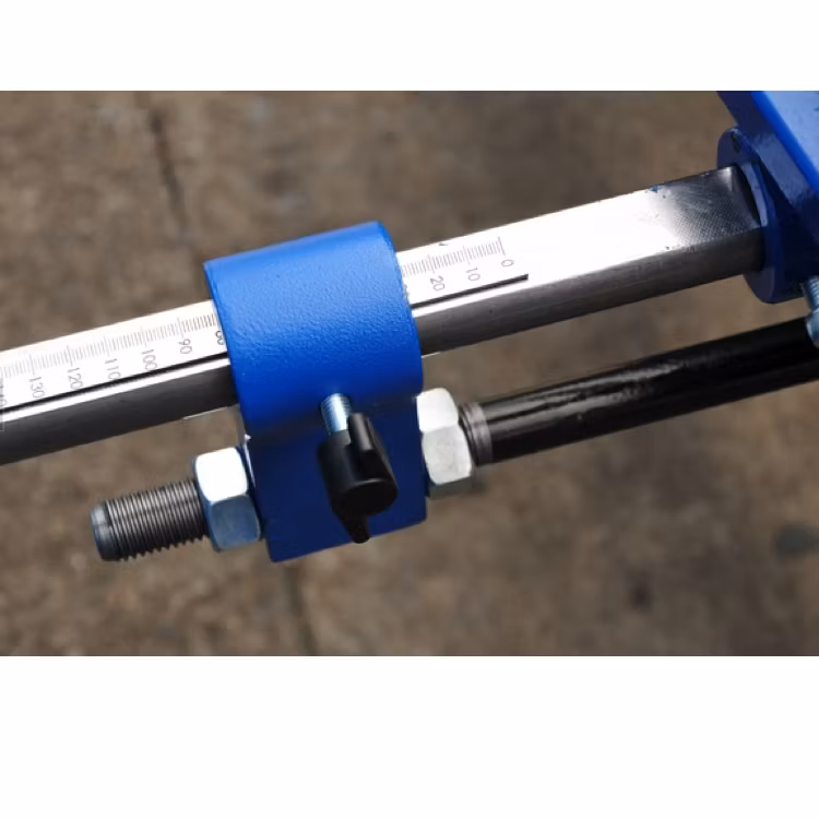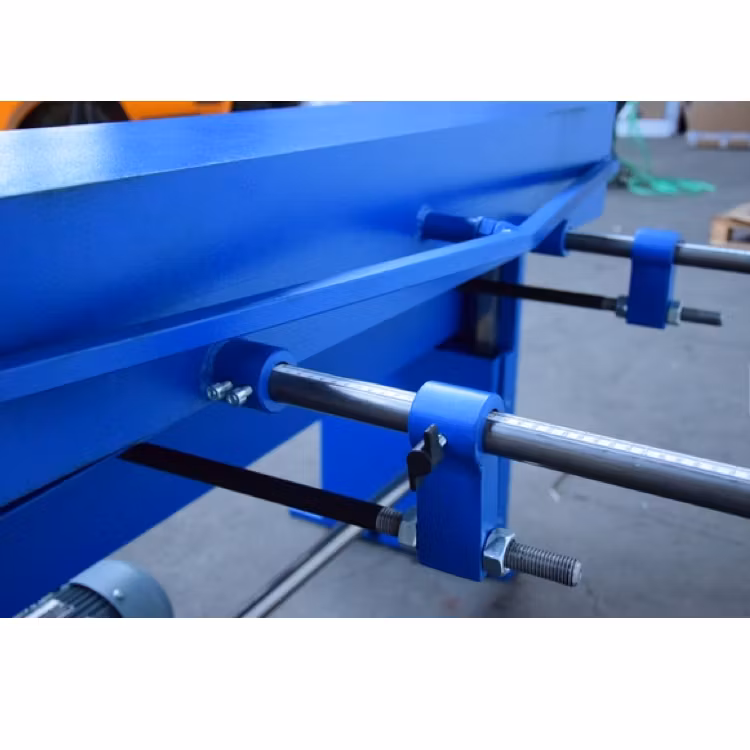 Enkel motordriven maskin med manuellt bakre anslag ( 500 mm ) och ett styck skena på bordet med 90 grader vinkel mot skären .