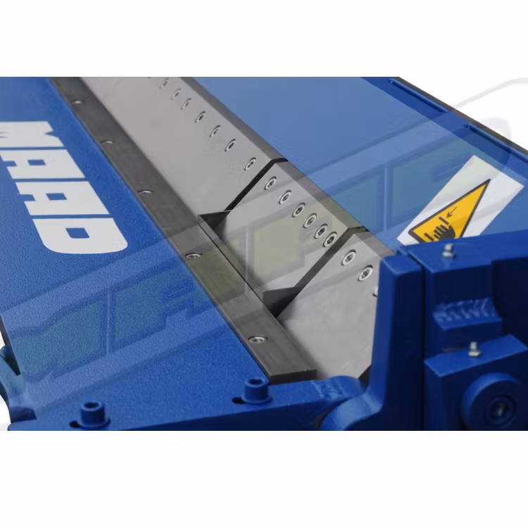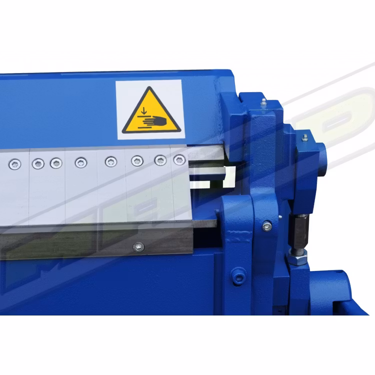 Standardutrustad i delade skär för överprisman som man kan flytta runt och sätta ihop för det mått man behöver. Max överprismats öppning är 90 mm, den är utrustad med en gasfjäder som gör att den inte faller ner i ett oväntat moment. Det finns gasfjäder även för bockningsskenan så att du lätt kan knäcka plåt och skona din rygg.
